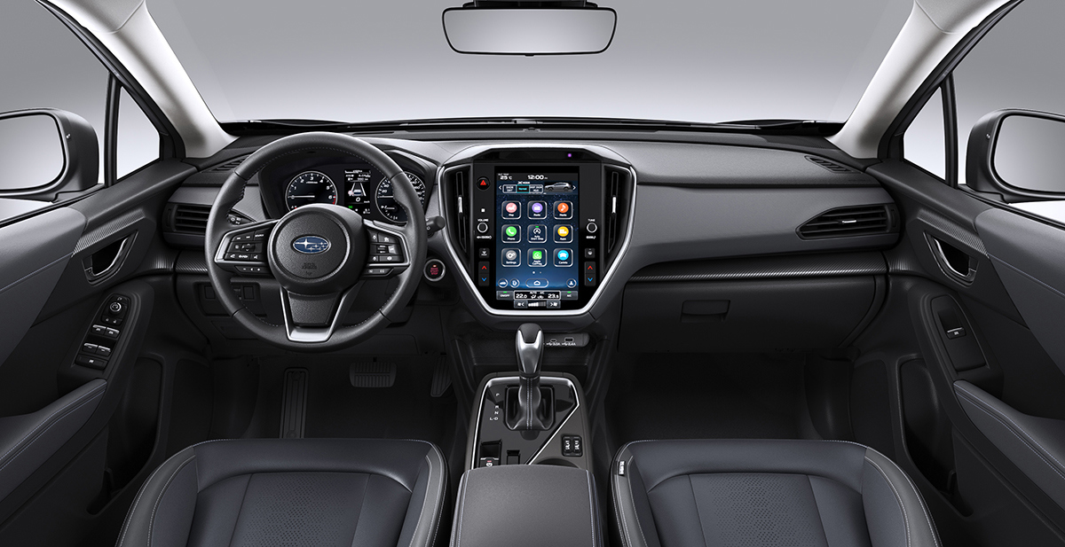 Subaru liels skārienekrāns ar integrētām lietotnēm – piemēram, Tālrunis, Radio, Karte un Apple CarPlay – padara katru braucienu savienotu, ērtu un drošu. Subaru Crosstrek aizmugurējais sēdeklis ar vietu trim pasažieriem. Crosstrek aizmugurējais sēdeklis ar 60/40 dalījumu nodrošina elastīgu iekraušanu – šeit redzams, kā šaurākā daļa ir nolaista, lai vienlaikus pārvadātu pasažierus un garākus priekšmetus bagāžniekā. Visais Subaru Crosstrek aizmugurējais sēdeklis ir nolocīts 60/40 dalījumā – izveido plakanu un ietilpīgu virsmu, lai ērti iekrautu lielus vai garus priekšmetus. Subaru Crosstrek ar elastīgu 60/40 nolokāmu aizmugurējo sēdekli – šeit redzams, kā platākā daļa ir nolocīta, lai iegūtu papildu bagāžas vietu, vienlaikus saglabājot vietu vienam pasažierim. Tuvplāns ar Subaru bagāžas stiprinājuma cilpu – izturīgs stiprinājuma punkts bagāžniekā kravas nostiprināšanai ar siksnām vai tīklu. Ielocīta kravas stiprinājuma cilpa Subaru bagāžas nodalījumā. Tuvplāns ar Subaru Crosstrek bagāžas nodalījuma malas aizsargu. Eleganti veidota iekāpšana pasažieru salonā Subaru Crosstrek automašīnā. Kravas āķis Subaru Crosstrek bagāžas nodalījumā. Atvērts jumta lūka Subaru automobilī, kas ielaiž salonā gaismu un svaigu gaisu.
